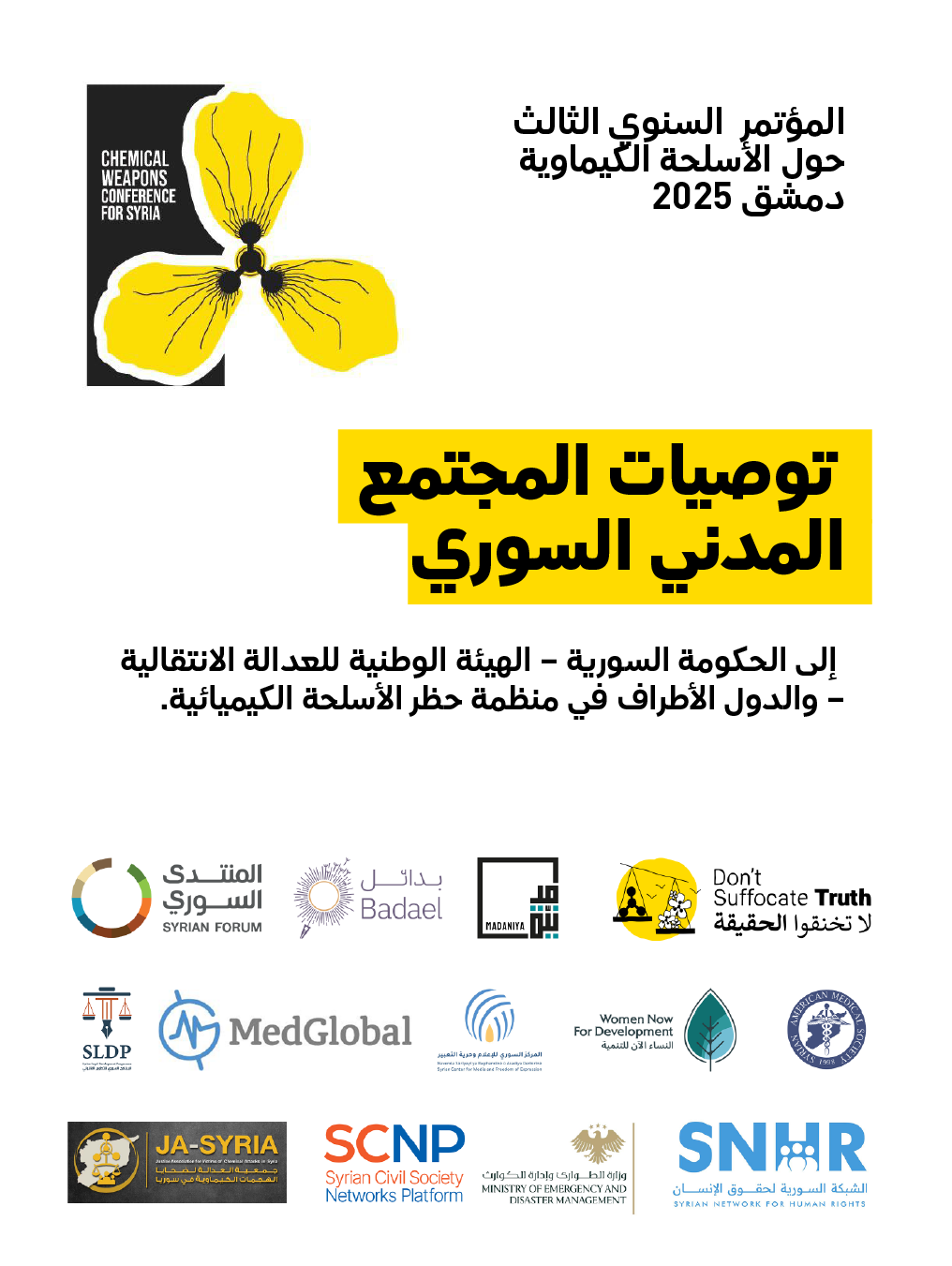 توصيات المجتمع المدني السوري إلى الحكومة السورية، الهيئِة الوطنية للعدالة الانتقالية، والدول الأطراف في منظمة حظر الأسلحة الكيميائية